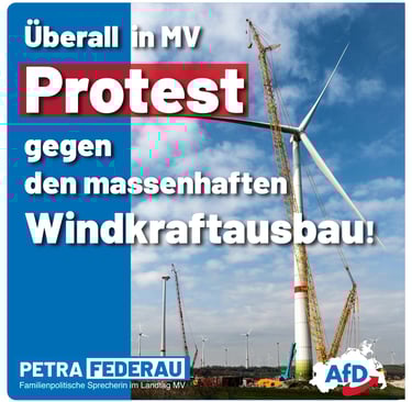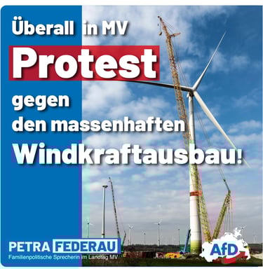 Zur aktuellen Debatte um den massiven Ausbau der Windenergie in Mecklenburg-Vorpommern und den wachsenden Widerstand im Klützer Winkel erklärt die energiepolitische Sprecherin der AfD-Fraktion, Petra Federau: